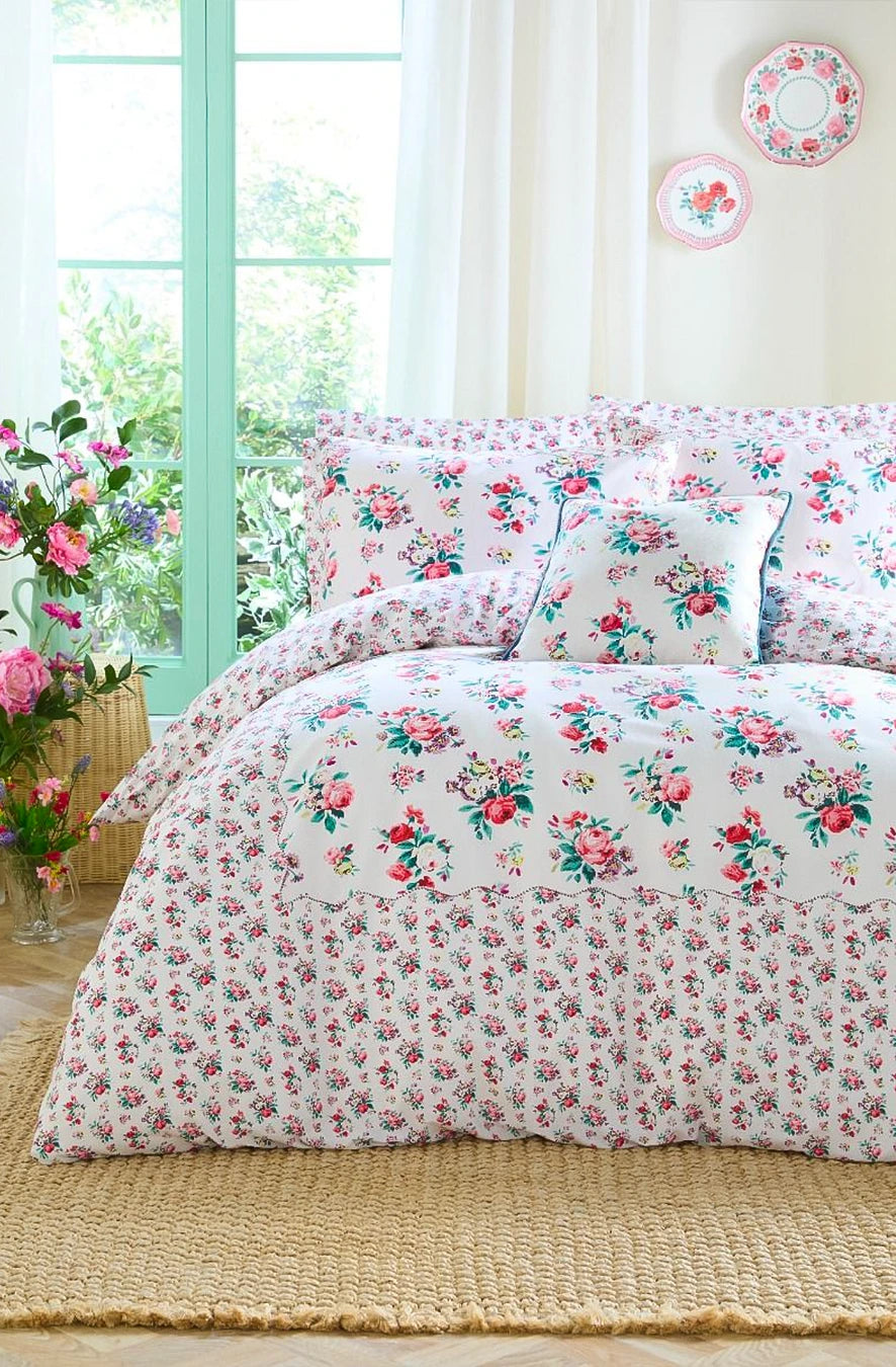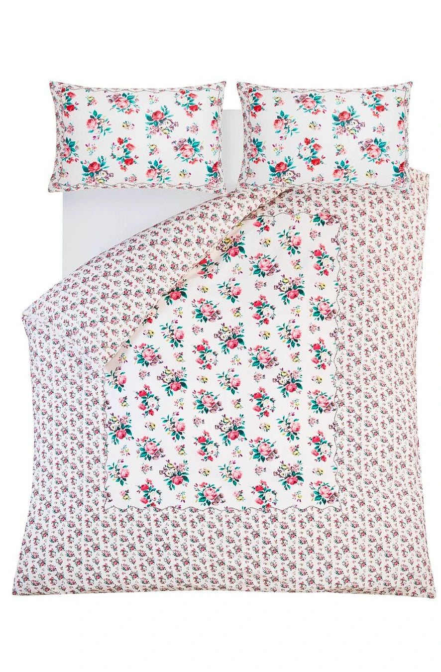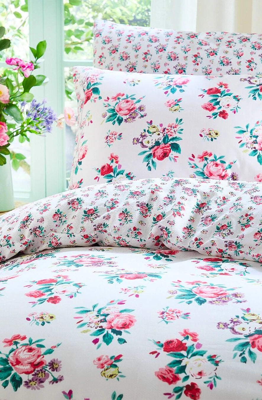 Această lenjerie de pat frumoasă, confecționată din bumbac percale, prezintă un imprimeu recuperat din arhive. "Icon Rose" evocă iconografia moștenirii Cath Kidston și pasiunea caracteristică pentru trandafiri. Pictat manual, cu un model ce imită cusătura de broderie, designul și proporțiile reprezintă o reinterpretare modernă a unui clasic atemporal.