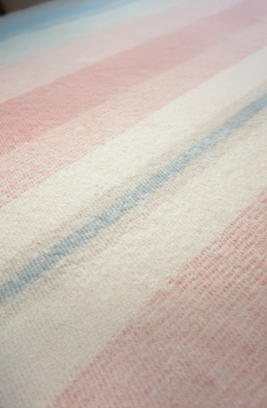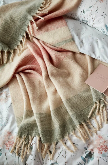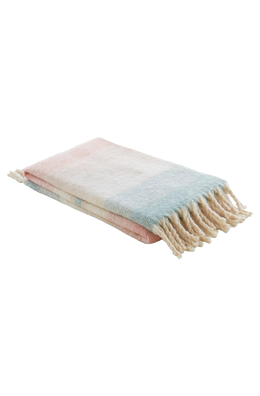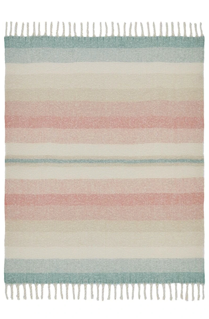 Această pătură deosebit de moale, cu dungi subtile în roz, crem și salvie, are un finisaj cu ciucuri la margine fiind accesoriul perfect pentru casa ta.