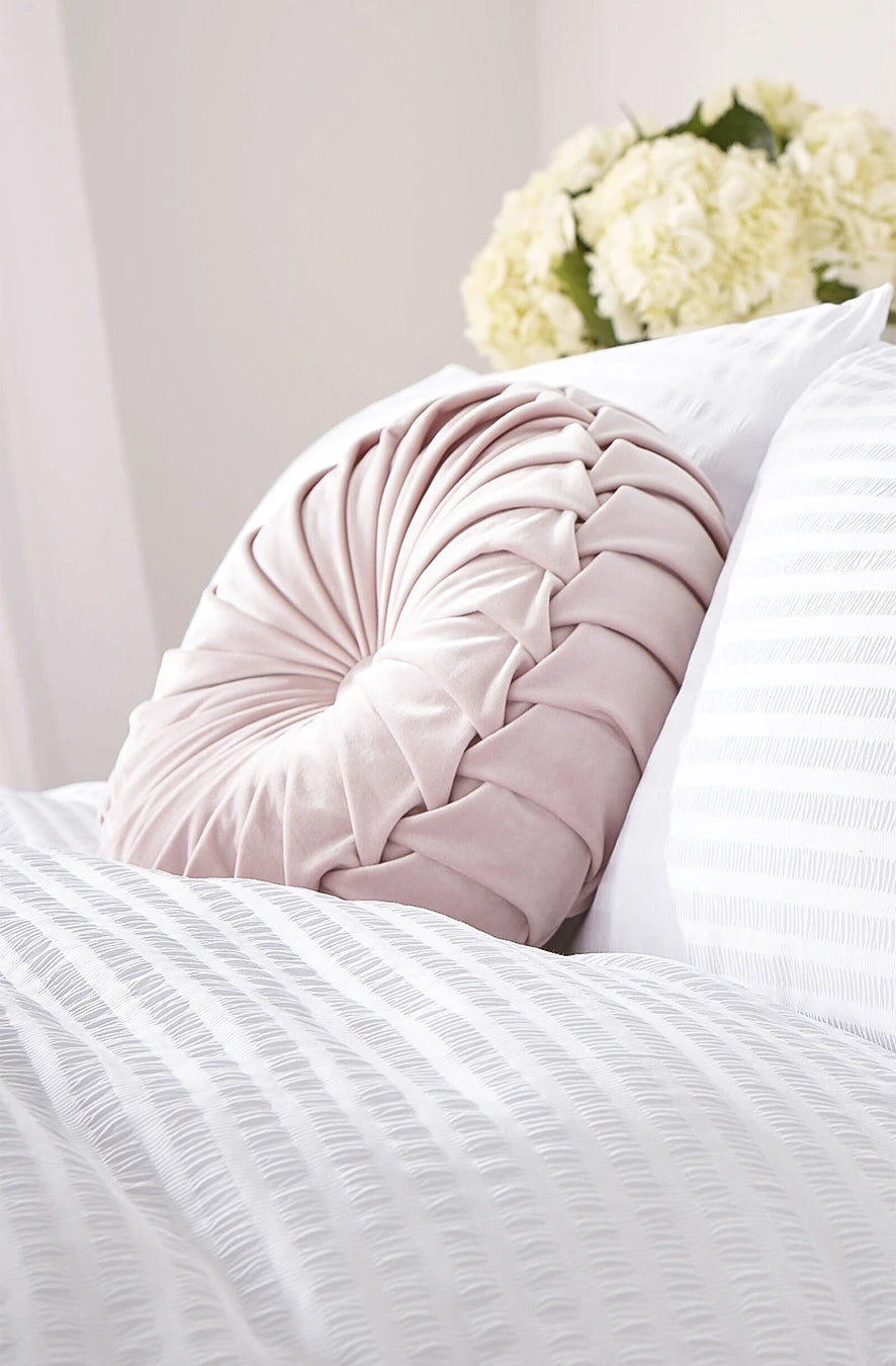 Disponibilă în mai multe culori rafinate – Almond, Amber, Blush, Fern și Sage – perna Rosanna, confecționată din catifea moale, cu designul său circular captivant, este perfectă ca și element de stil modern în orice încăpere.