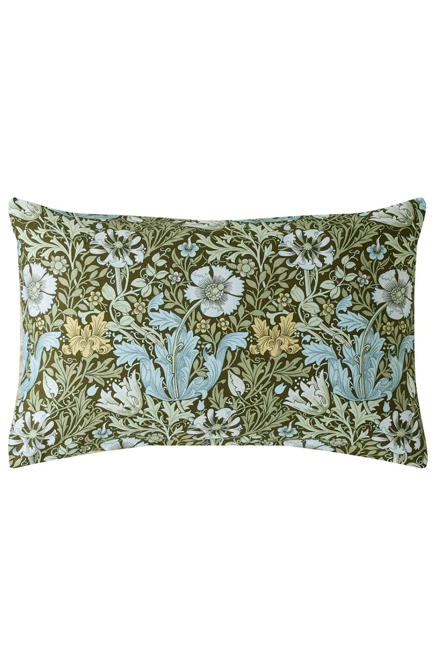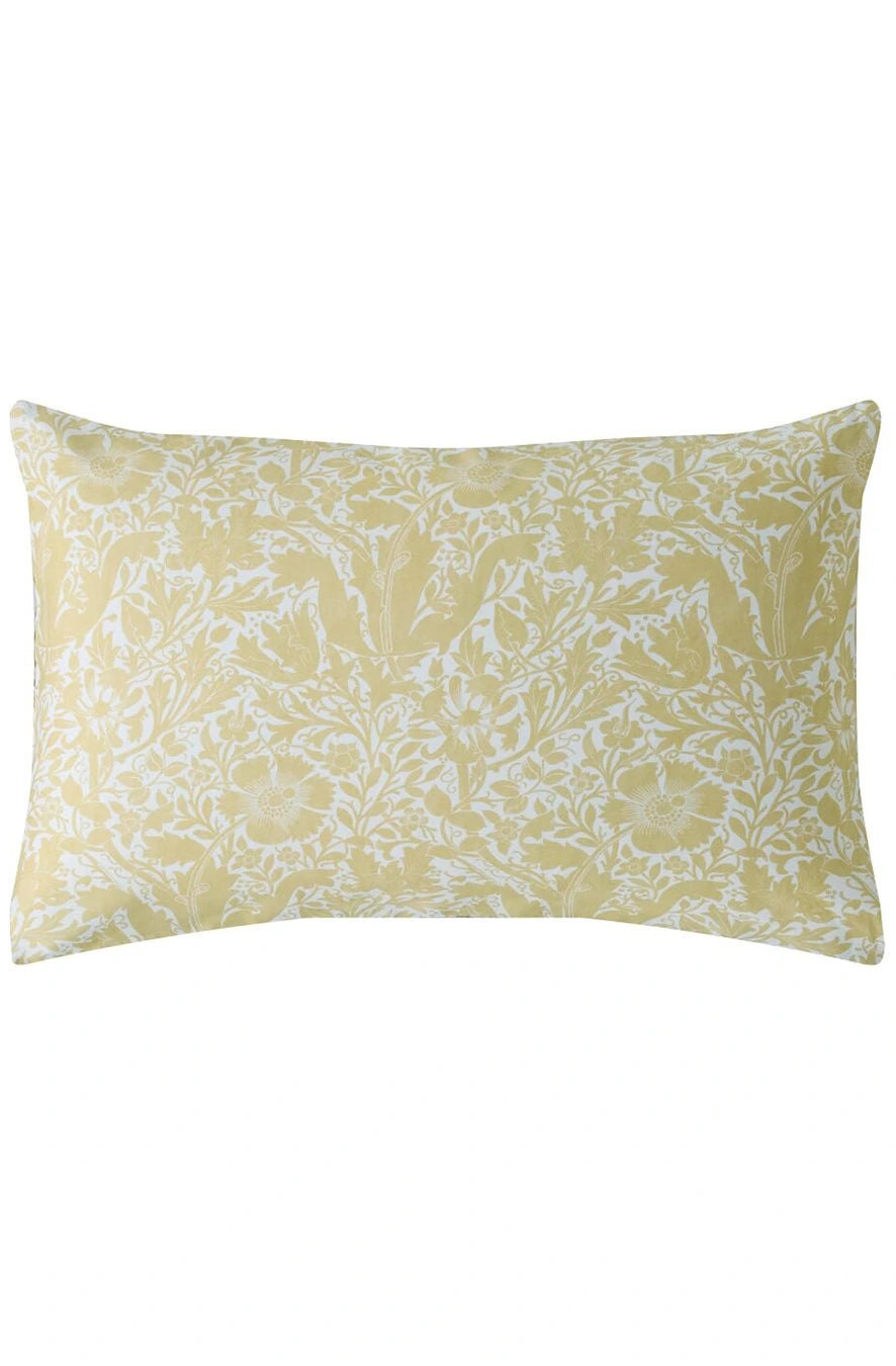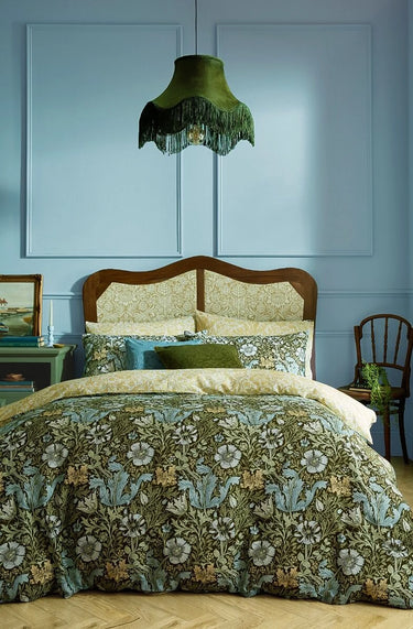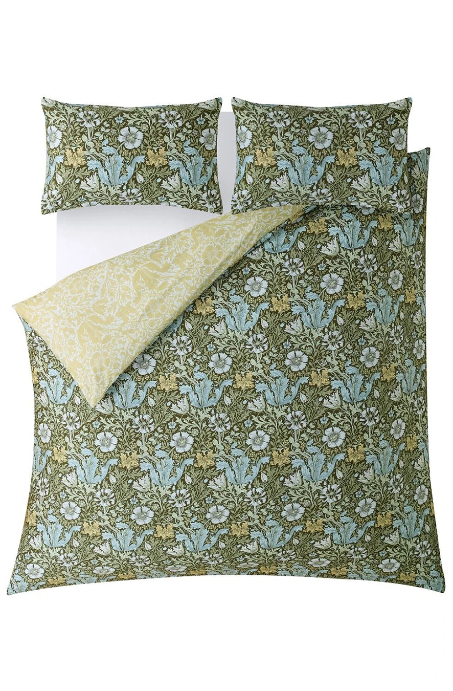 William Morris a căutat să transforme casele cu ajutorul culorilor și modelelor care reflectă frumusețea lumii naturale. Lenjeria de pat Compton prezintă lalele și caprifoi pe fundalul unor straturi bogate de frunziș. Reversul prezintă un imprimeu proaspăt, într-o nuanță caldă de galben, care completează armonios designul.