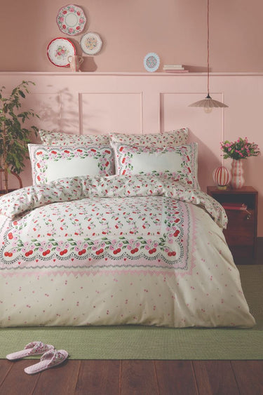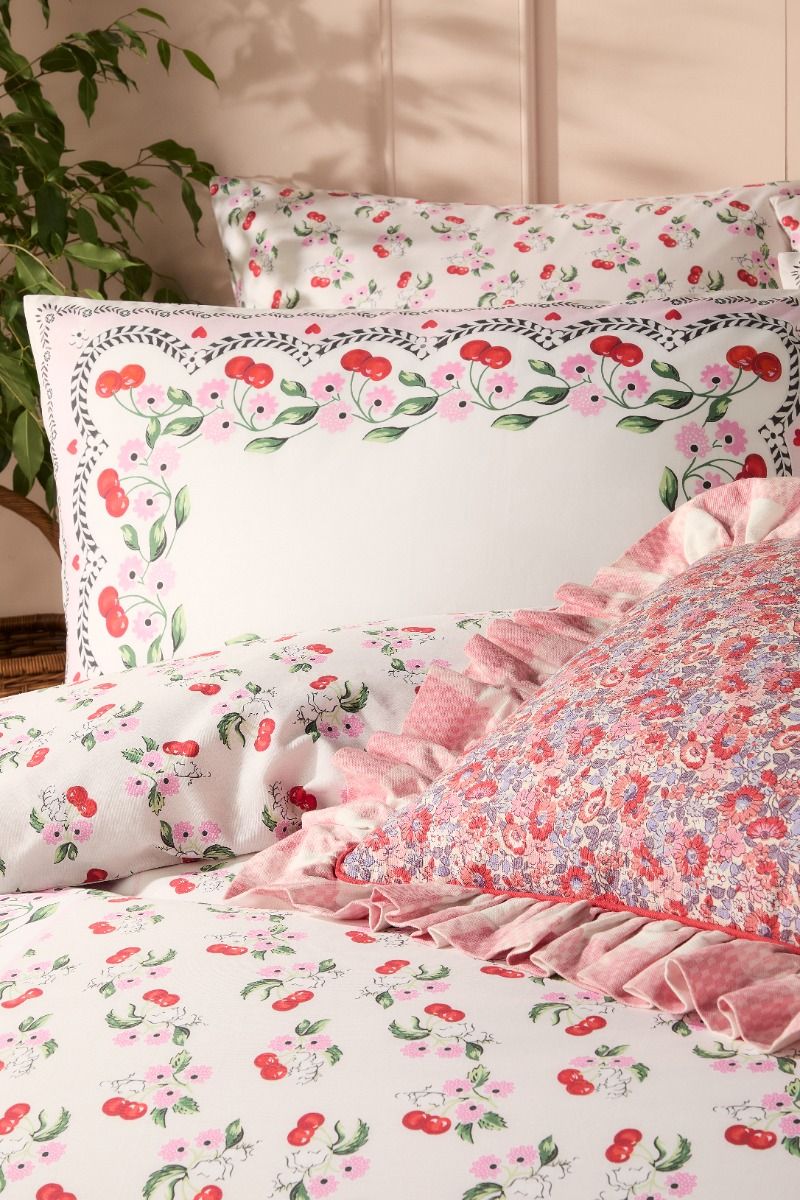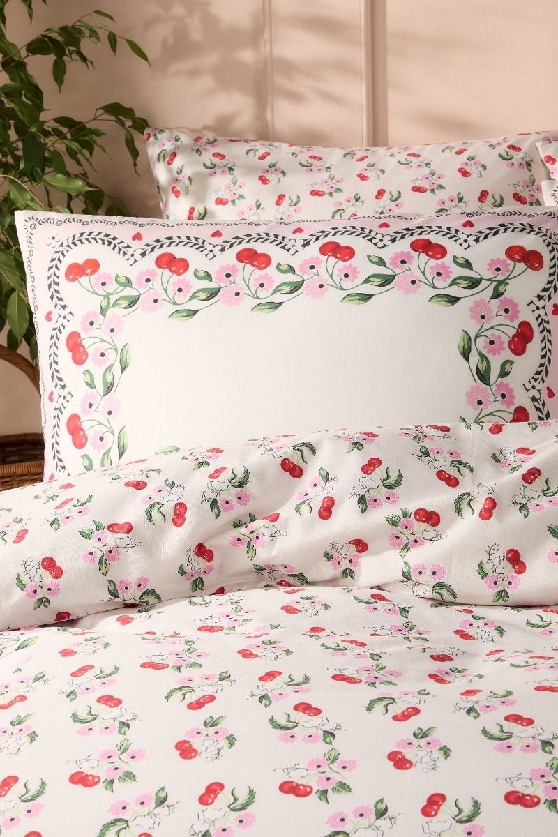 Cireșele pictate manual au contribuit la crearea unui model vintage, feminin, asemănător unei eșarfe. Imprimat pe bumbac satinat, cu un revers asortat jucăuș, acest imprimeu superb este o reinterpretare din arhivă, inspirându-se din lunga istorie a imprimeurilor cu fructe de vară ale lui Cath Kidston.