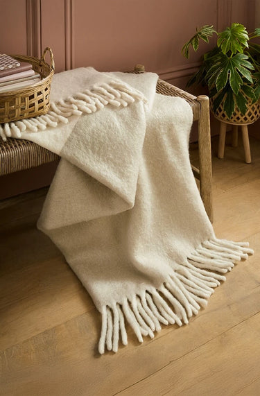 Adăugați confort oricărei camere cu această cuvertură luxoasă și moale din amestec de lână. Țesută în două tonuri naturale complementare, pătura Bronwen este finisată la margini cu ciucuri groși.