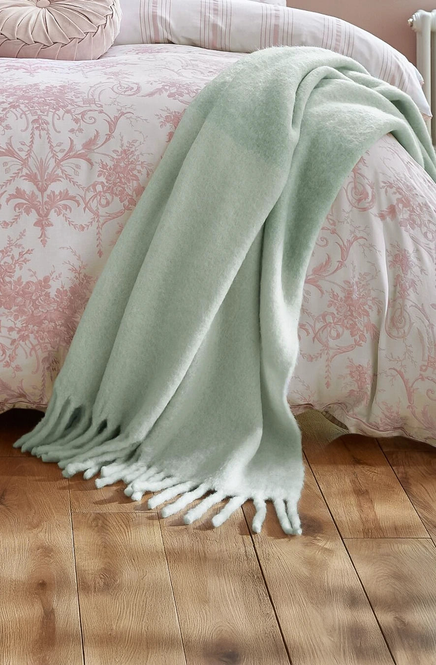 Creați un ambient confortabil în cameră cu această cuvertură luxoasă și moale din amestec de lână. Țesută în două tonuri complementare, aceasta este decorată cu ciucuri groși, aducând un plus de confort și stil oricărei camere.
