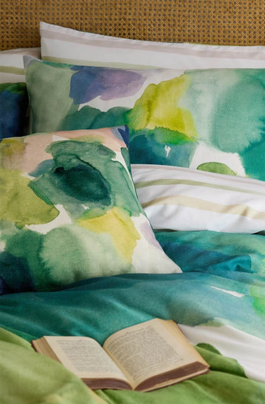 Superba pernă Lochaber prezintă o multitudine de tușe mari, care se îmbină într-o paletă sofisticată de verde, albastru și roz prăfuit, cu o notă de violet. Această paletă relaxantă și estompată este inspirată de verdeața vie și luxuriantă din Lochaber. Imprimată pe un fundal natural din bumbac, cu un frumos revers albastru, această pernă este perfectă pentru a aduce bucurie și culoare în casa ta.